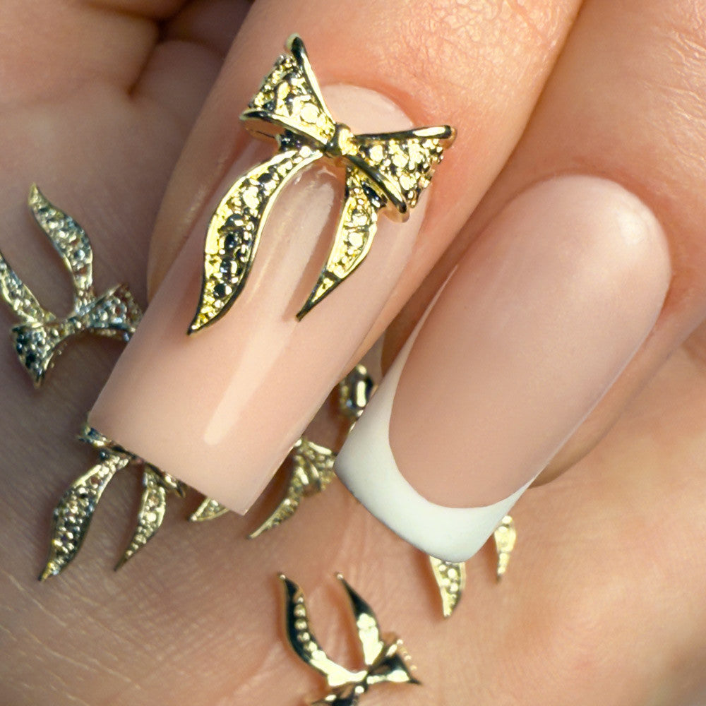 La confezione contiene fiocchi di colore oro, hanno una base di appoggio piatta per farli aderire meglio alla superficie dell'unghia.